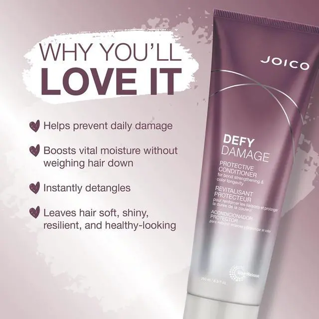 Joico Defy Damage Protective Conditioner replenishes lost moisture, restores softness and boosts hairs resilience against breakage.