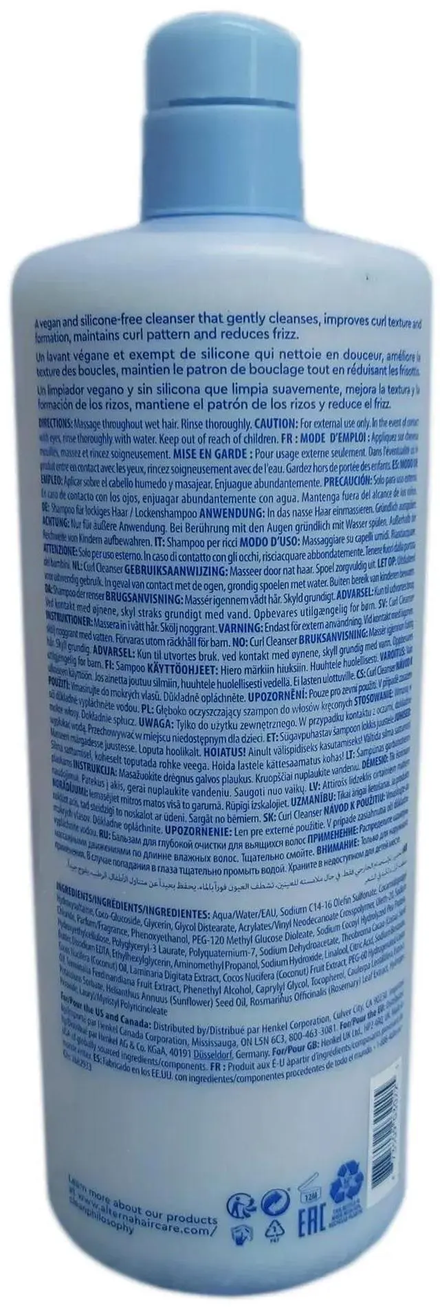 The Alterna My Canvas Begin Again Curl Cleanser is a vegan and silicone-free formula enriched with Fair Trade and Organic Coconut Oil and Shea Butter. This gently cleanses, improves curl texture and formation, maintains curl pattern, and reduces frizz. It is free from added parabens, SLS/SLES sulfates, phthalates, synthetic color, gluten, mineral oil, formaldehydes, and formaldehyde-releasing agents.