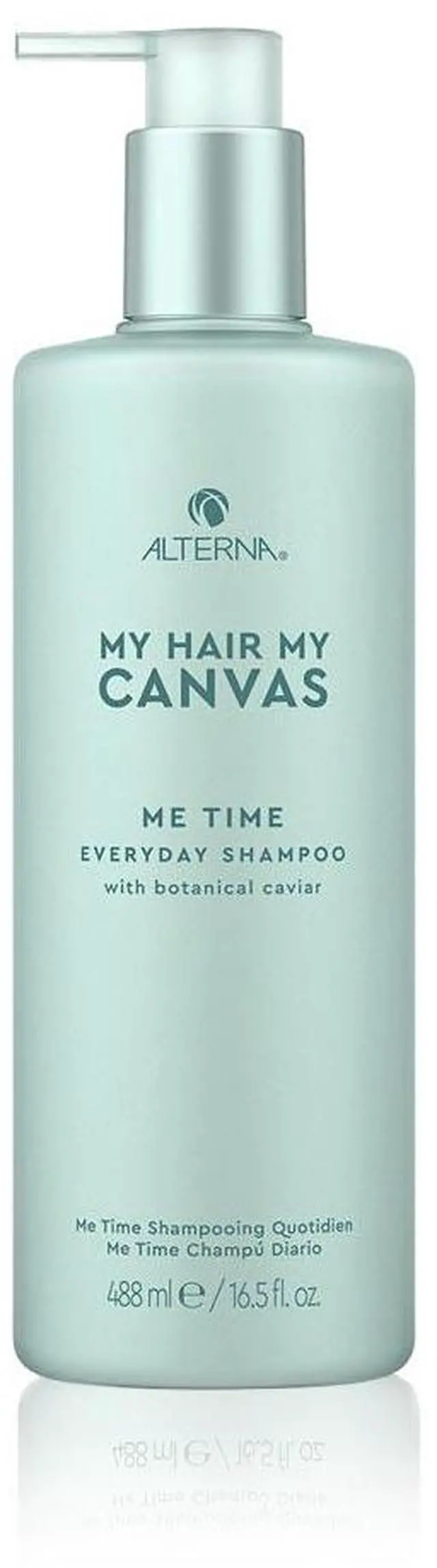 Alterna My Hair My Canvas Me Time Everyday Shampoo 16.5 Ounce 487 Milliliters hydrates, improves your overall hair appearance and smoothes the cuticle to add bounce shine and strength. Its formulated with sustainably sourced vegan botanical caviar. A gentle, shine-enhancing, vegan shampoo that provides smoothness and improves manageability. For all hair types.