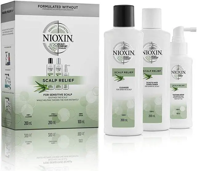 Explore the Nioxin Scalp Relief System Kit, which includes scalp relief cleanser, scalp relief conditioner, and scalp relief soothing serum. Use all three of our scalp relief system kit products to get dry, itchy scalp relief while thickening your hair from the 1st use.