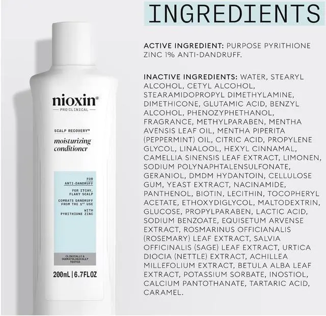 After shampooing with Nioxin Scalp Recovery Purifying Shampoo, apply a generous amount of Nioxin Scalp Recovery Conditioner to wet hair. Gently massage the conditioner into the scalp and hair, focusing on the ends. Leave on for 1-3 minutes to allow the nourishing ingredients to penetrate. Rinse thoroughly with water. For best results, follow with the Scalp Soothing Serum and use at least three times a week.