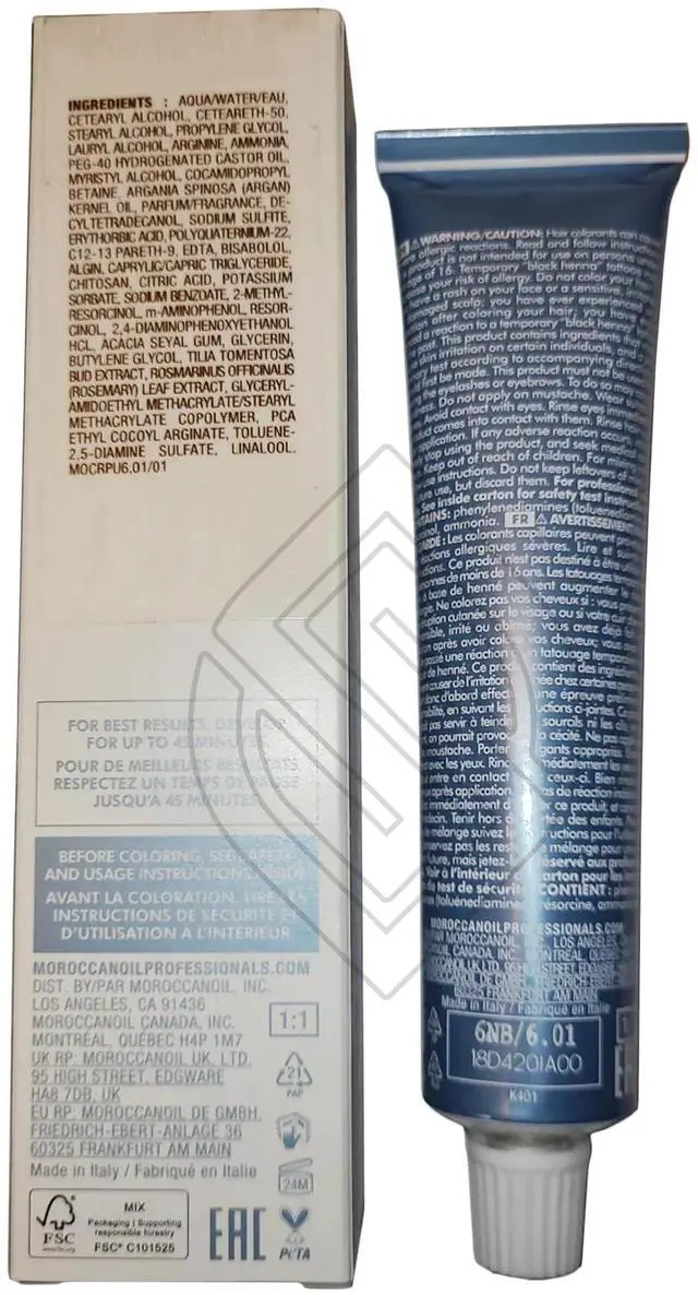 Moroccanoil Color Rhapsody Ultimates 6NB/6.01 Dark Blonde Natural Ash Permanent Cream Hair Dye 2oz 60ml