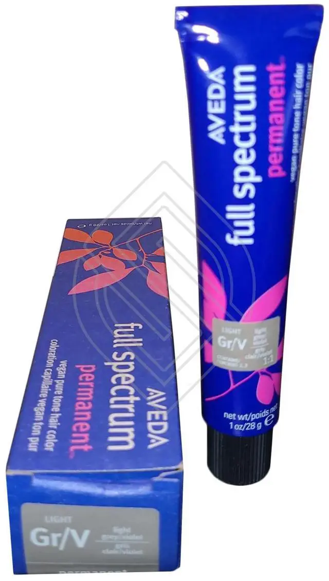 Aveda Full Spectrum Permanent Pure Tone Hair Color 1oz Light Gr/V Gray/Violet. An up to 96% naturally derived formula, which delivers outstanding fade-resistant color. Organic sunflower, castor, and jojoba oils infuse the hair with incredible shine and condition.