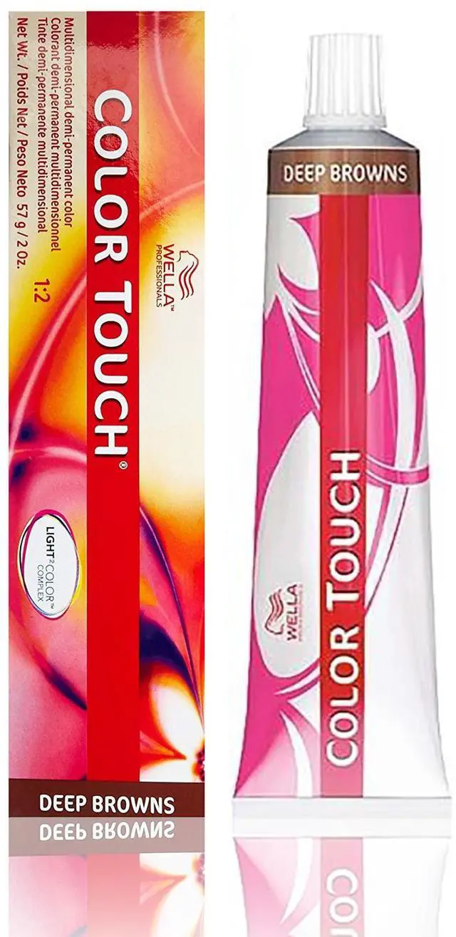 Wella Color Touch 4/71 Deep Browns Medium Brown/Ash 2 Ounce 60 Milliliters Semi-permanent color Ammonia-free - Color Touch Deep Browns formula delivers a long-lasting, brilliant, shining, and multi-faceted color result. The 12 shades of the Deep Browns color family will create rich notes of toffee fudge and brunette color. The Color Touch formula has been optimized and includes a