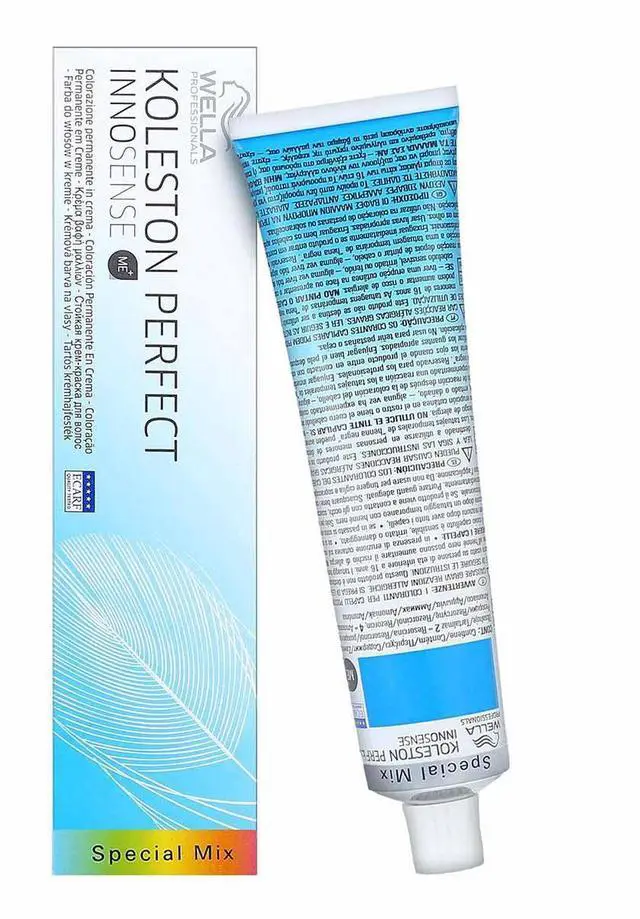 Wella Koleston Perfect Innosense Permanent Hair Color 9/0 Very Light Blonde 2 Ounce 60 Milliliters Wella Koleston Perfect Innosense is formulated without PPD PTD, making it suitable for people with allergies and intolerances. It is the first permanent color of its kind to receive the European Centre Allergy Research Foundation seal of approval! This is formulated with ME+, a breakthrough color technology for ingredient-conscious clients. Five new shades inspired by earth, mineral, and stone. ME+ is present in Pure Naturals, Rich Naturals, and Deep Browns of the Koleston Perfect Innosense brand.