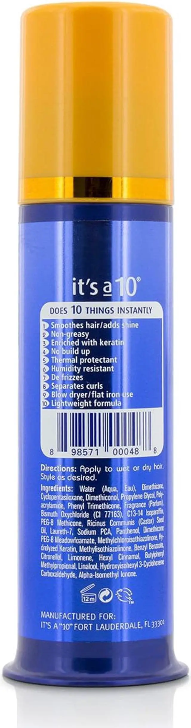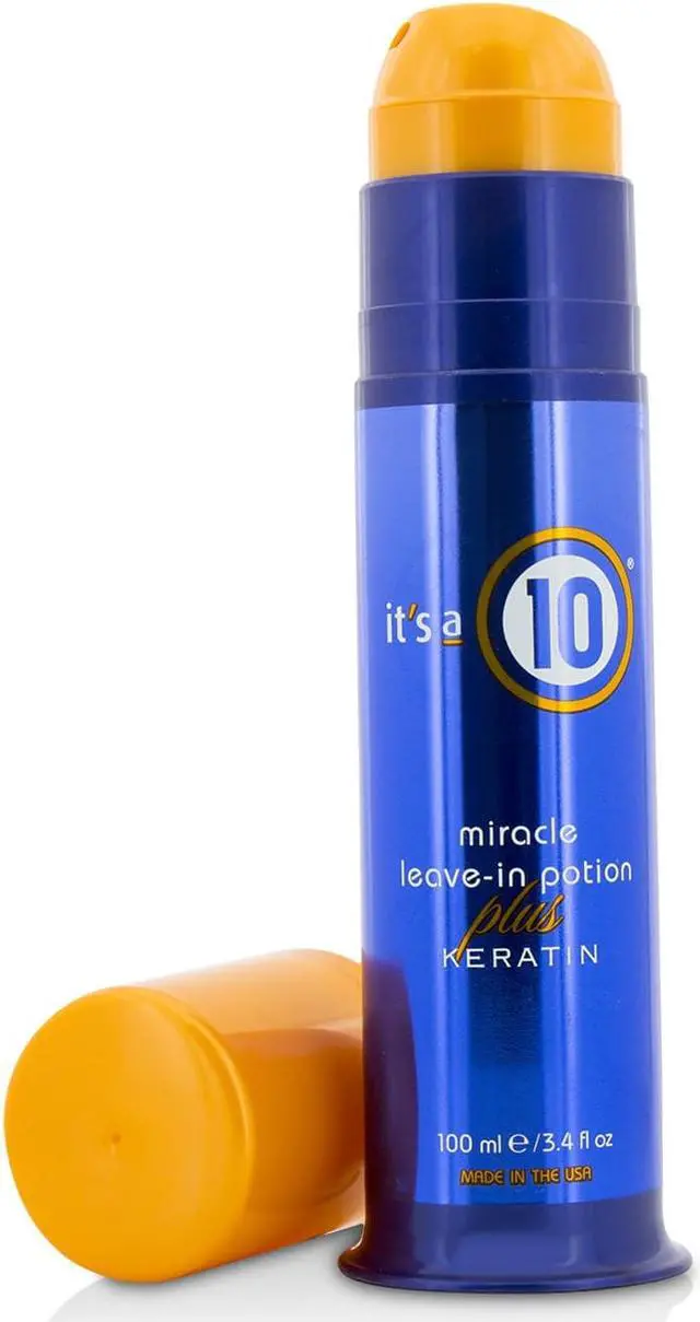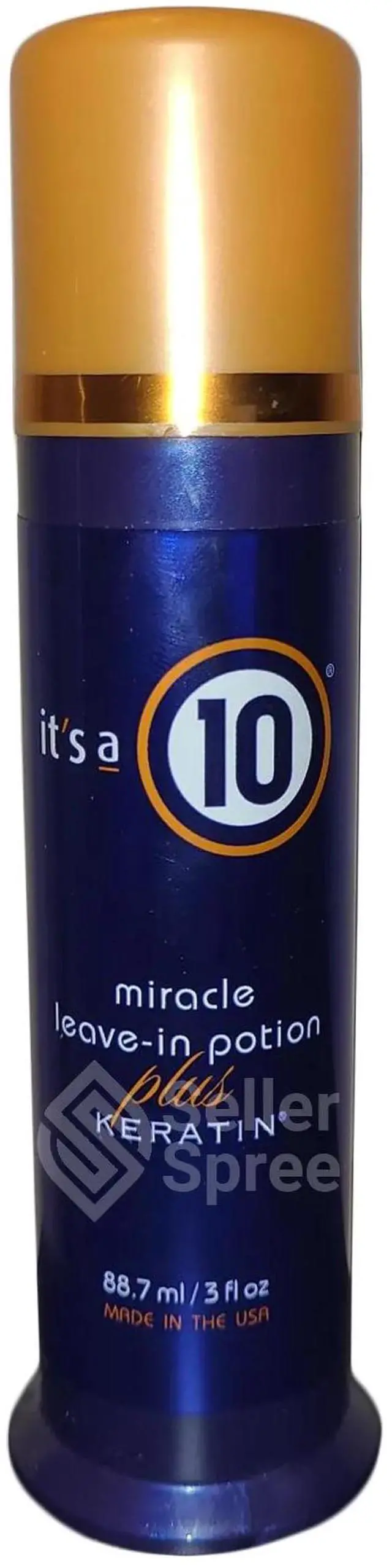 Miracle leave-in potion plus keratin infuses hair with silky softness while eliminating frizz or the appearance of damage. Does 10 things instantly. Humidity resistant. Blow dryer and flat iron use.