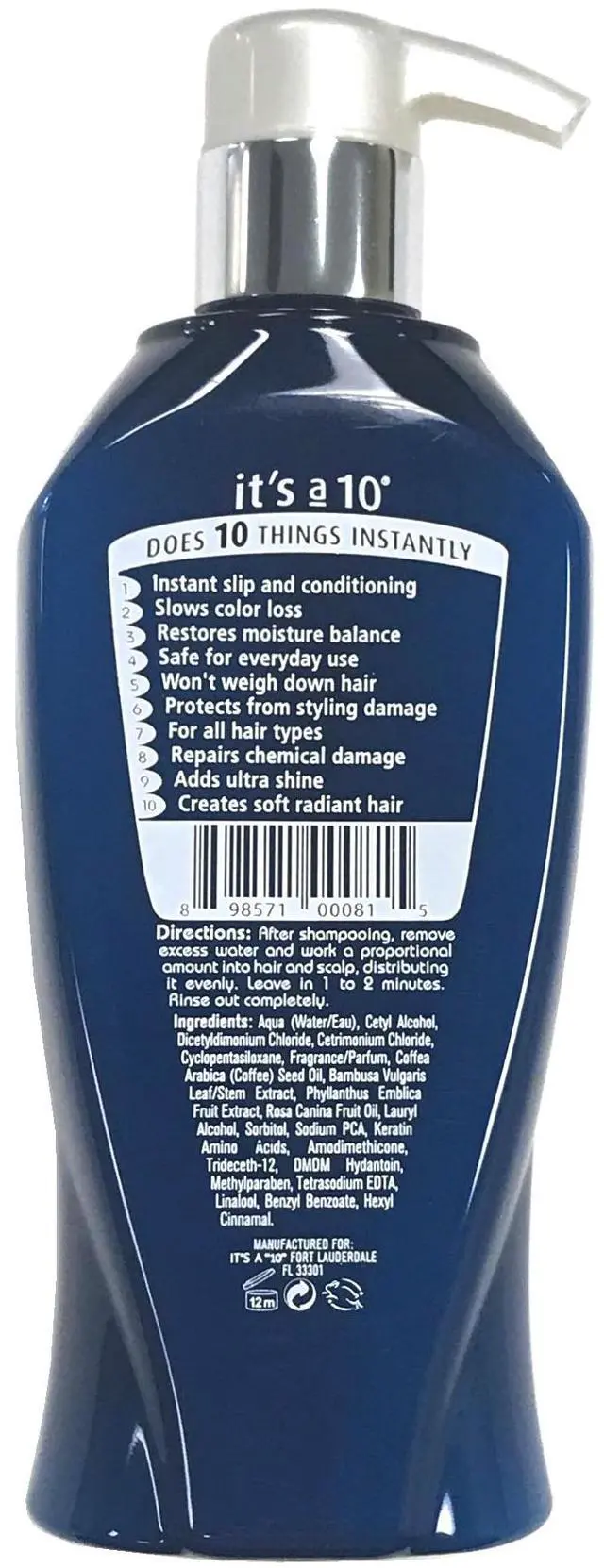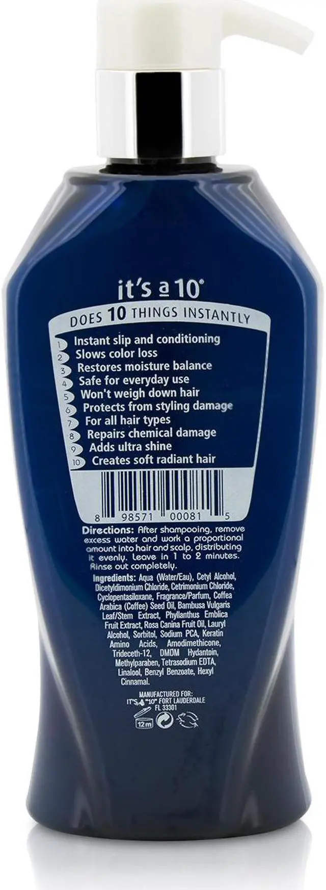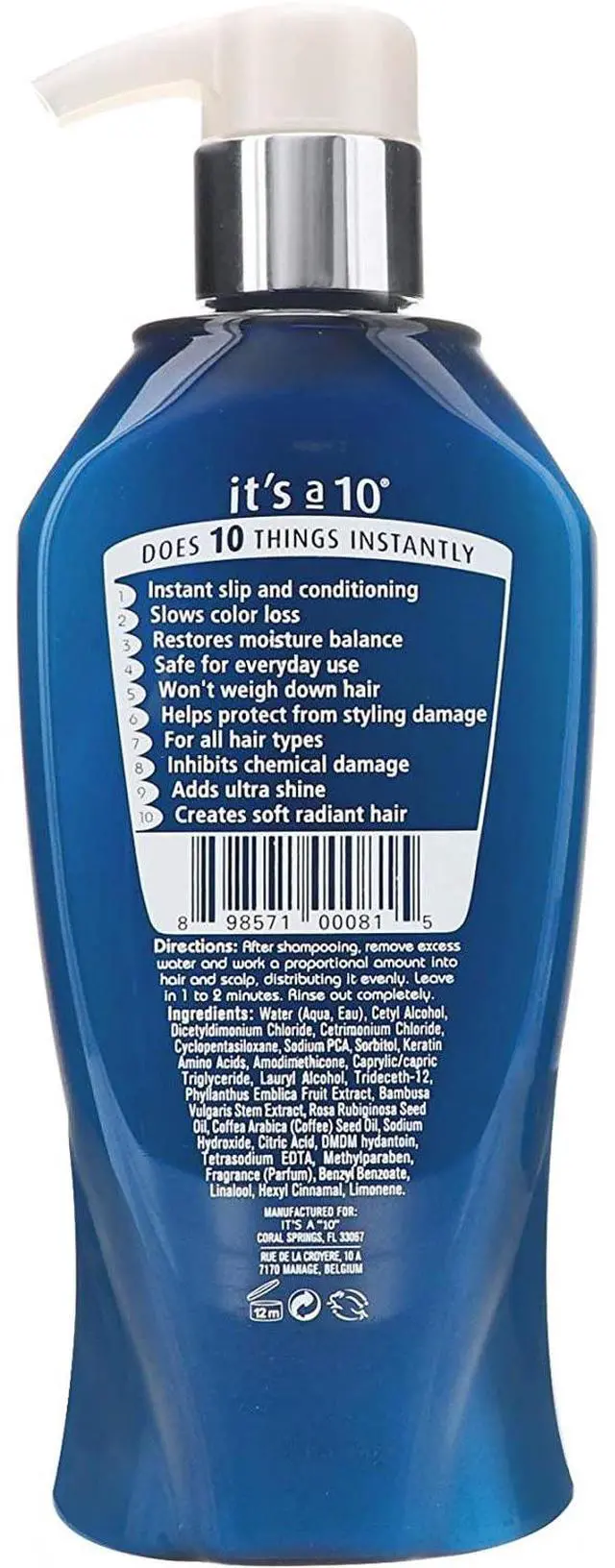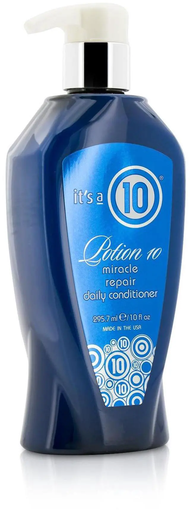 Chemical damage, UV damage, and heat styling are all no match for the powerful formula of Its a 10 Potion 10 Miracle Repair Daily Conditioner. Starting at application, hair is detangled with instant slip and intense conditioning - yet rinses clean away so hair is never heavy or weighed down.