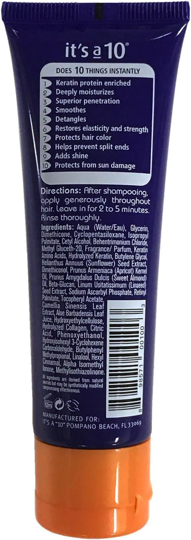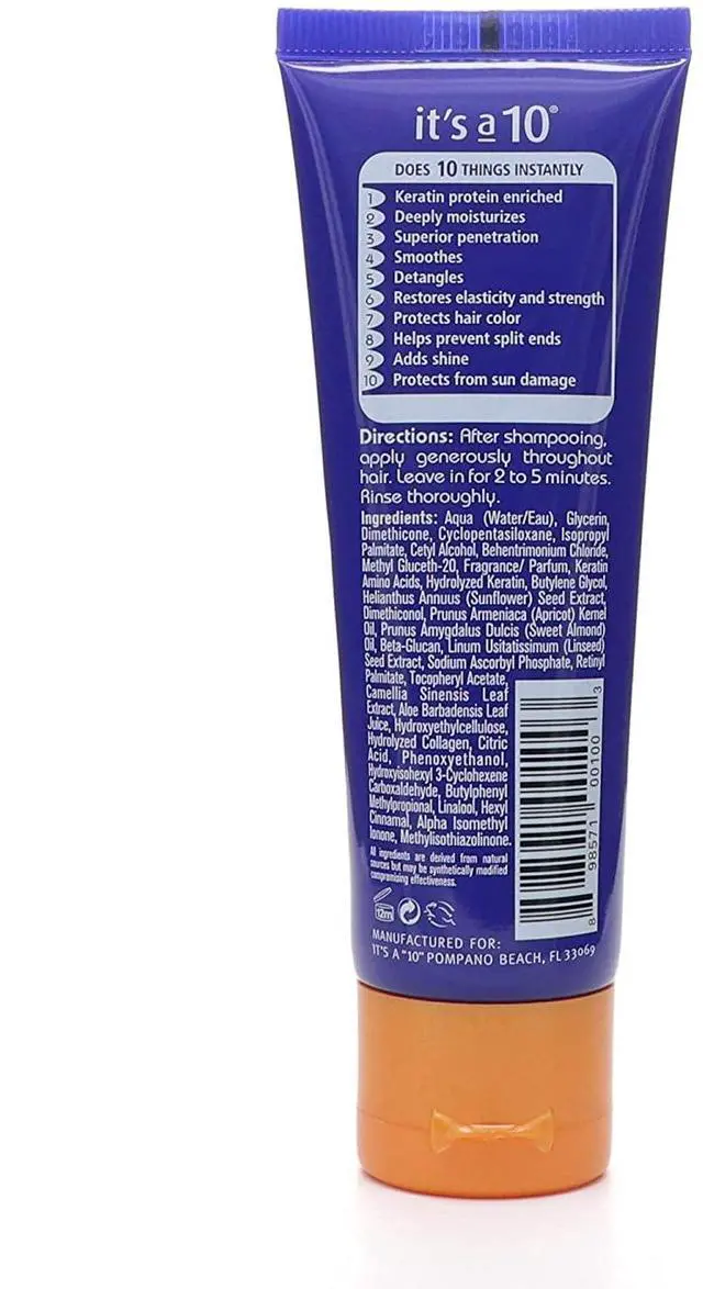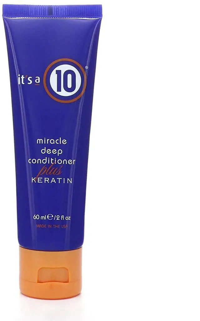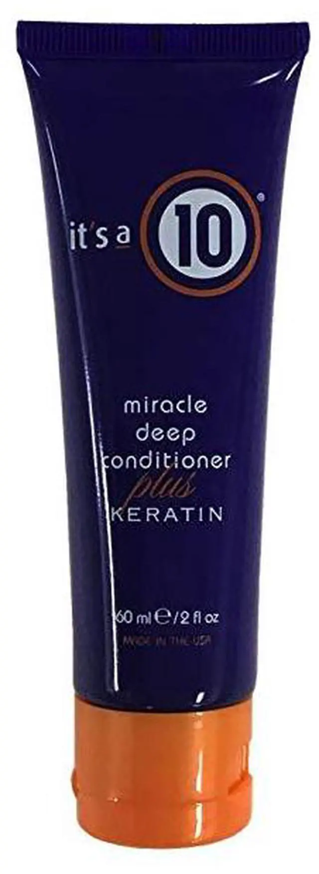 Smooth, sleek, soft, strong... It's all simpler than ever thanks to the essential conditioners and effortless spritz-on application of It's a 10 Miracle Leave-In Conditioner Plus Keratin. Excellent just out of the shower as a detangler, and even better as a barrier of protection against heat styling, this lightweight, fragrant conditioner penetrates deep into the hair shaft, rebuilding dry and damaged hair from the inside out with hair's most vital nutrient? Keratin. Used daily, the product makes straight styles mirror-smooth and glossy, gives curls soft, frizz-free definition, and makes all types of hair more touchable and resilient with every application