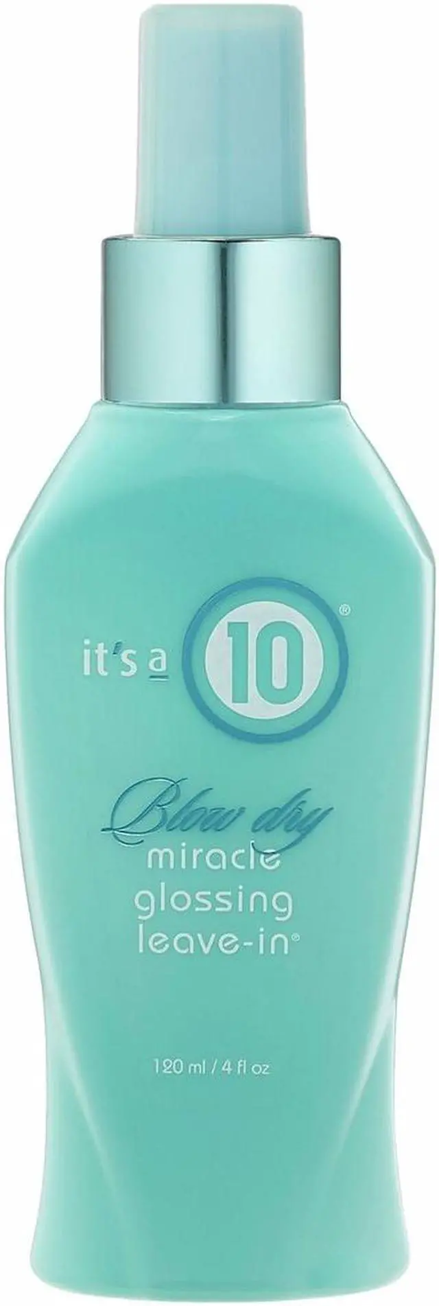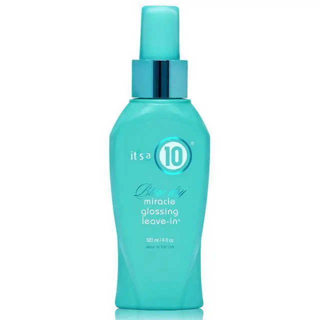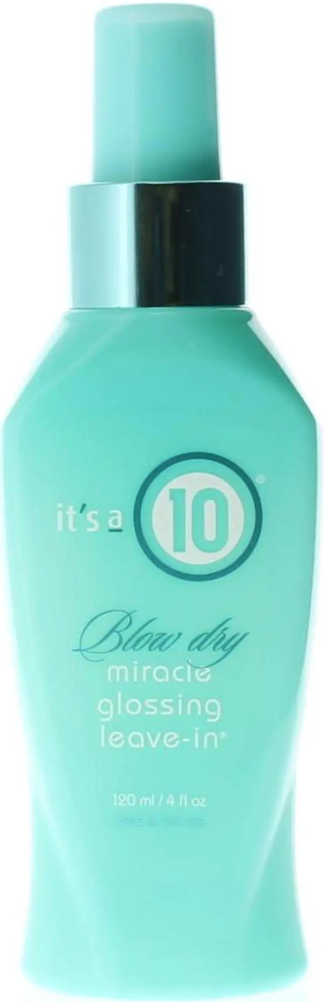It all starts with highly effective moisturizers that strengthen and seal the hair shaft, then follows up with weightless smoothing agents that add glossy appearance as well as defending against heat, UV damage, breakage, and more. Used regularly, hair gets stronger and more naturally shiny on its own, and the high-gloss finish from Its a 10 Miracle Blow-Dry Glossing Leave-In is amplified even further. It?? s a must-have secret for gorgeously silky hair that feels just as good as it looks.