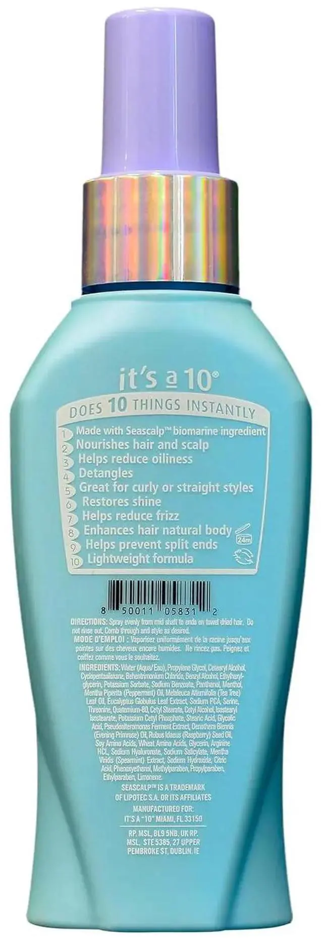 Made with Seascalp. Nourishes hair and scalp. Helps reduce oiliness. Detangles Great for curly or straight styles. Restores shine. Helps reduce frizz. Enhances hair's natural body. Helps prevent split ends. Lightweight formula. Red Raspberry Oil.