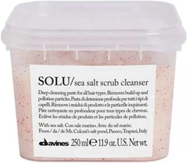 Scrub shampoo with sea salt. It refreshes the scalp and removes impurities, product residues and polluting particles. It gives texture to the hair and keeps it clean and light for longer.