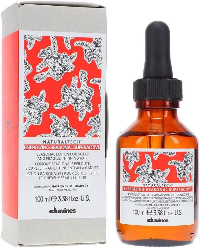 Davines NaturalTech Energizing Seasonal Superactive is a regenerating lotion to counteract hair loss caused by stress and seasonal factors, the seasonal superactive effectively strengthens the hair while improving the hairs density and body. This seasonal superactive provides comfort to the scalp and acts as a preventative treatment for those prone to hair loss.