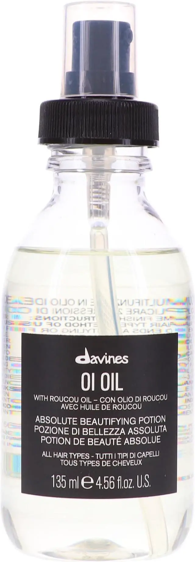 Davines OI Oil adds shine and softness to hair while also detangling and fighting frizz. Hair is shiny, hydrated, protected from styling and environmental factors, and frizz-free. For anti-frizz and extra shine, particularly for dry or coarse hair.