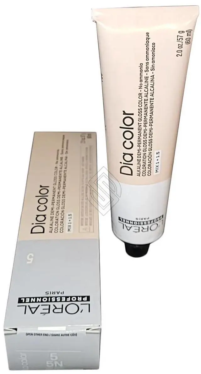 LOreal Professionnel DIA Richesse Hair Color 2oz Demi-permanent alkaline hair color system without ammonia. Rich and deep reflects. Shiny and visible results even on a dark base. Covers up to 70% of gray hair. Apply to natural or colored hair using a shade at the same level as the original color. Ionene G + Incell technology complex helps strengthen and protect hair fiber.