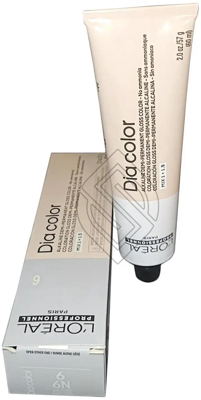 LOreal Professionnel DIA Richesse Hair Color 2oz Demi-permanent alkaline hair color system without ammonia. Rich and deep reflects. Shiny and visible results even on a dark base. Covers up to 70% of gray hair. Apply to natural or colored hair using a shade at the same level as the original color. Ionene G + Incell technology complex helps strengthen and protect hair fiber.