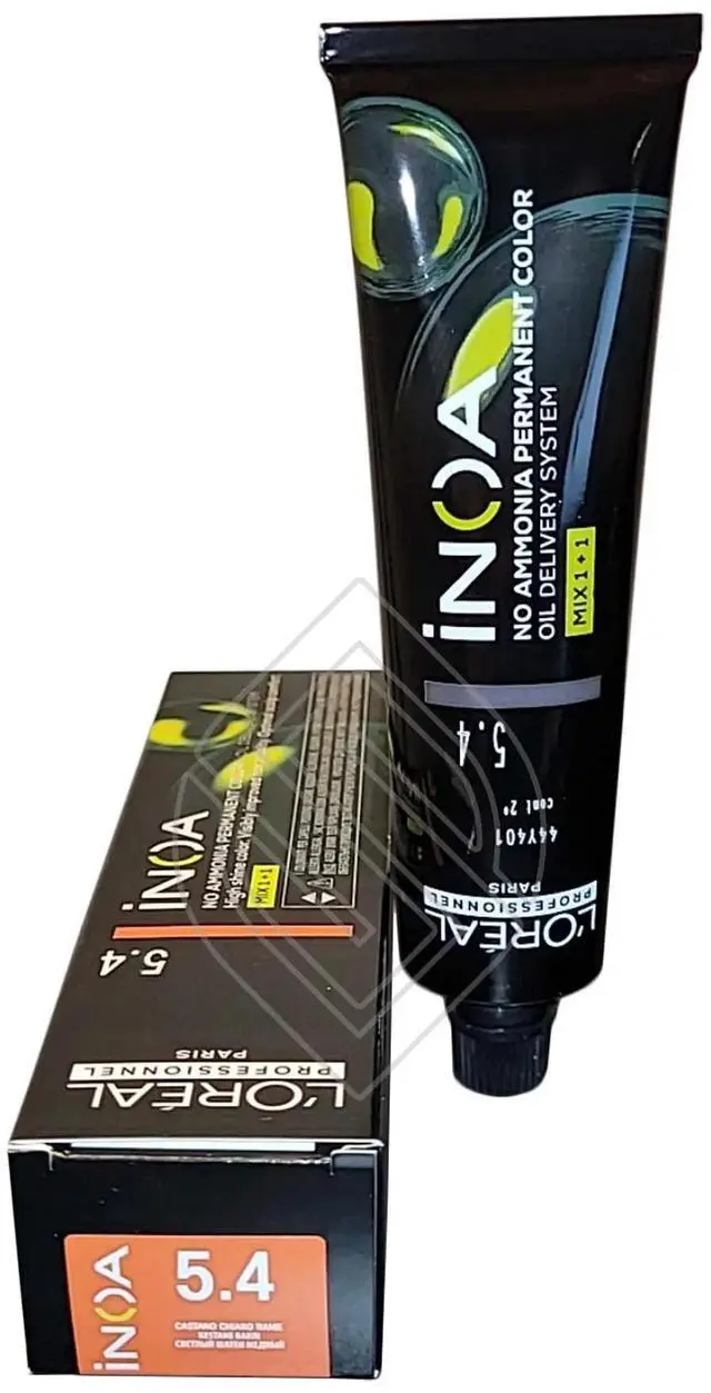 • Loreal Inoa Ammonia Free ODS2 Hair Color 60g/2oz #5.4 (Original-5.4/5C) permanent color with ODS2 technology with uncompromised comfort. Lightens up to 3 levels in 35 minutes. Covers up to 100% of white hair. Loreal Inoa hair color contains no ammonia and is enriched with oils and delivers outstanding color to the heart of the hair. INOA leaves hair feeling conditioned with sublime color radiance until your next color appointment. Experience our ultimate in luxury color, with improved comfort during the development time and no odor.