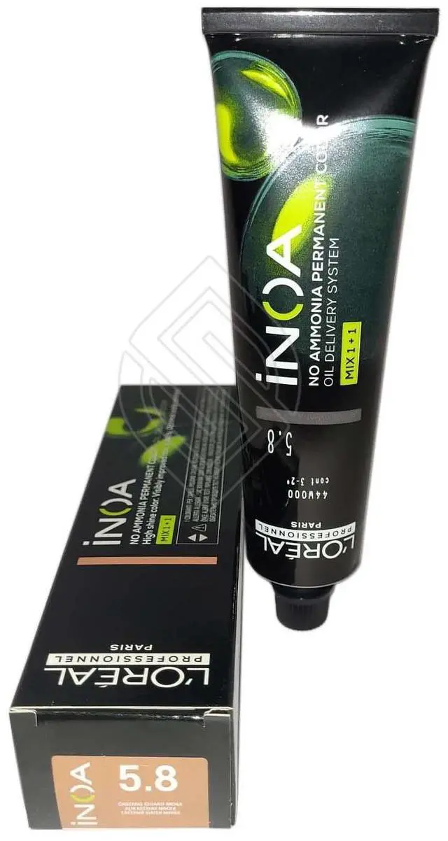 Loreal Inoa Ammonia Free ODS2 Hair Color 60g/2oz # 5.8 (Originally- 5.8 /5M) permanent color with ODS2 technology with uncompromised comfort. Lightens up to 3 levels in 35 minutes. Covers up to 100% of white hair. Loreal Inoa hair color contains no ammonia and is enriched with oils and delivers outstanding color to the heart of the hair. INOA leaves hair feeling conditioned with sublime color radiance until your next color appointment. Experience our ultimate in luxury color, with improved comfort during the development time and no odor.