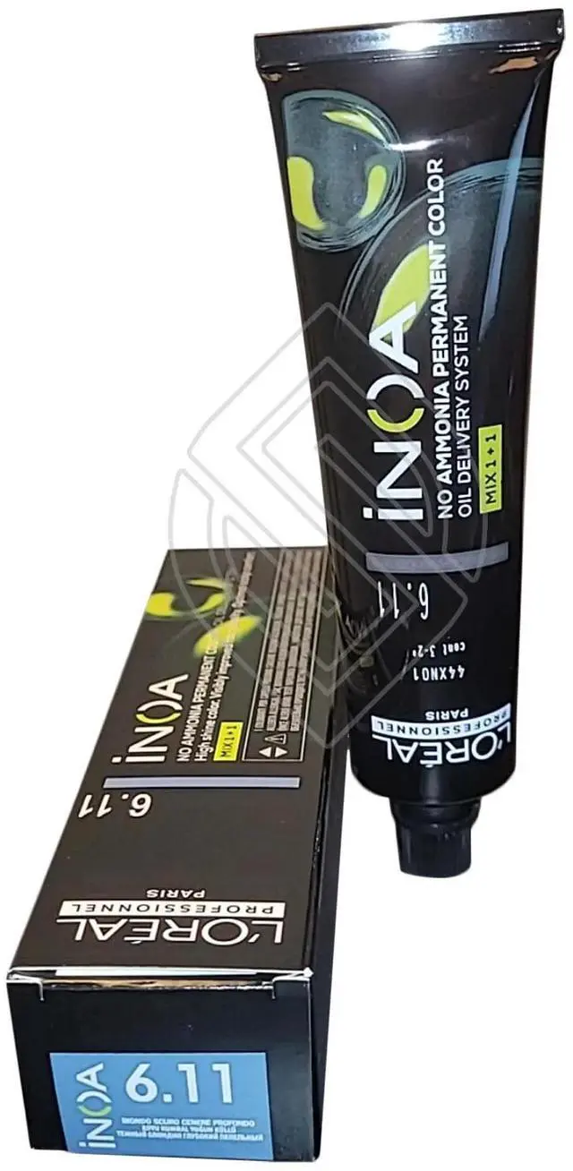 LOreal Professionnel INOA # 6.11 (Original- 6.11 /6BB)Ammonia Free Hair Color Permanent color with ODS2 technology for uncompromised comfort. Lightens up to 3 levels in 35 minutes. Covers up to 100% of white hair. Easy to mix and apply. Leaves hair feeling intensely nourished and hydrated until the next color treatment. Hair is softer than before the hair coloring process. Sublime shine. Mix 1 to 1 ratio. Contains no ammonia and no odor.