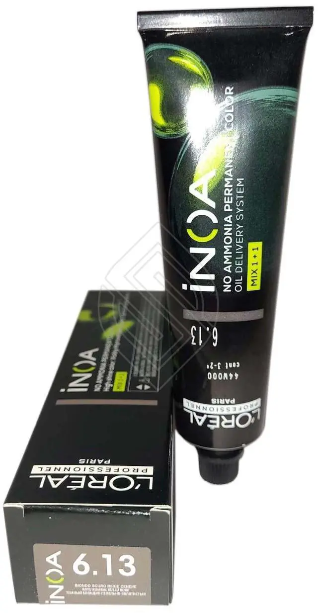 Loreal Inoa Ammonia Free ODS2 Hair Color 60g/2oz # 6.13 (Originally- 6.13 /6BG) permanent color with ODS2 technology with uncompromised comfort. Lightens up to 3 levels in 35 minutes. Covers up to 100% of white hair. Loreal Inoa hair color contains no ammonia and is enriched with oils and delivers outstanding color to the heart of the hair. INOA leaves hair feeling conditioned with sublime color radiance until your next color appointment. Experience our ultimate in luxury color, with improved comfort during the development time and no odor.