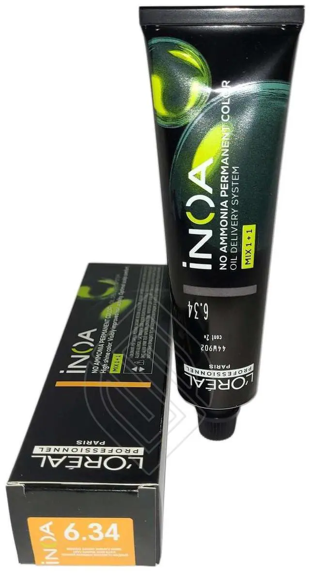 Loreal Inoa Ammonia Free ODS2 Hair Color 60g/2oz # 6.34 (Originally- 6.34 /6GC) Dark Golden Copper Blonde permanent color with ODS2 technology with uncompromised comfort. Lightens up to 3 levels in 35 minutes. Covers up to 100% of white hair. Loreal Inoa hair color contains no ammonia and is enriched with oils and delivers outstanding color to the heart of the hair. INOA leaves hair feeling conditioned with sublime color radiance until your next color appointment. Experience our ultimate in luxury color, with improved comfort during the development time and no odor.