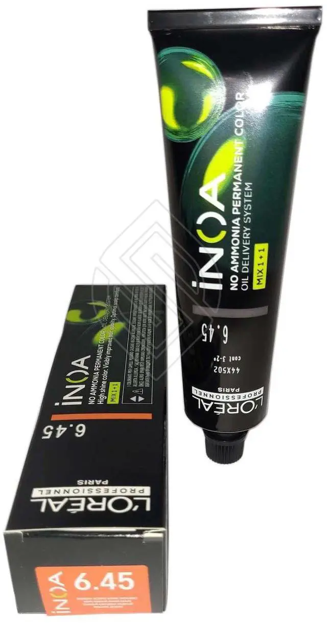 Loreal Inoa Ammonia Free ODS2 Hair Color 60g/2oz # 6.45 (Originally- 6.45 /6CRv) Dark Copper Mahogany Blonde permanent color with ODS2 technology with uncompromised comfort. Lightens up to 3 levels in 35 minutes. Covers up to 100% of white hair. Loreal Inoa hair color contains no ammonia and is enriched with oils and delivers outstanding color to the heart of the hair. INOA leaves hair feeling conditioned with sublime color radiance until your next color appointment. Experience our ultimate in luxury color, with improved comfort during the development time and no odor.