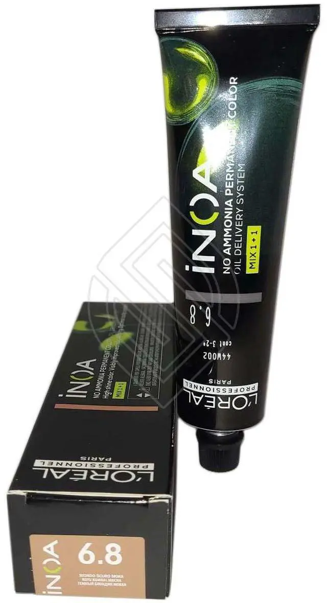 Loreal Inoa Hair Color # 6.8 (Originally- 6.8 /6M)Dark Mocha Blonde No Ammonia permanent color with ODS2 technology with uncompromised comfort. Lightens up to 3 levels in 35 minutes. Covers up to 100% of white hair. Loreal Inoa hair color contains no ammonia and is enriched with oils and delivers outstanding color to the heart of the hair. INOA leaves hair feeling conditioned with sublime color radiance until your next color appointment. Experience our ultimate in luxury color, with improved comfort during the development time and no odor.