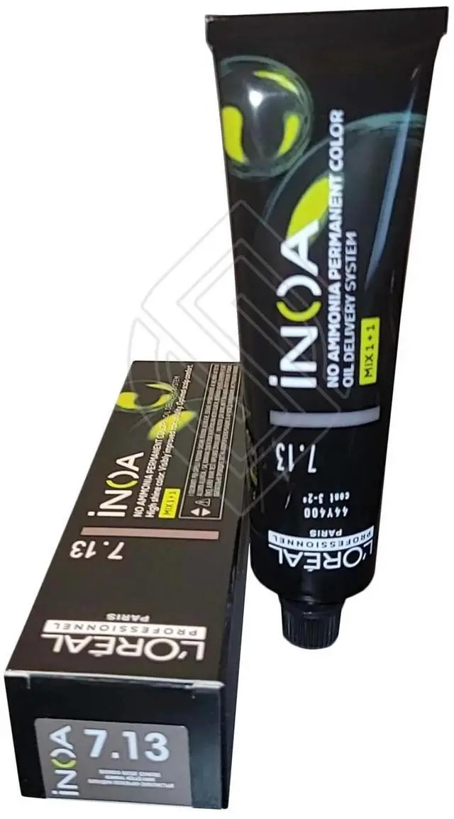 Loreal Inoa Ammonia Free ODS2 Hair Color 60g/2oz # 7.13 (Original- 7.13 /7BG) Ash Golden Blonde permanent color with ODS2 technology with uncompromised comfort. Lightens up to 3 levels in 35 minutes. Covers up to 100% of white hair. Loreal Inoa hair color contains no ammonia and is enriched with oils and delivers outstanding color to the heart of the hair. INOA leaves hair feeling conditioned with sublime color radiance until your next color appointment. Experience our ultimate in luxury color, with improved comfort during the development time and no odor.