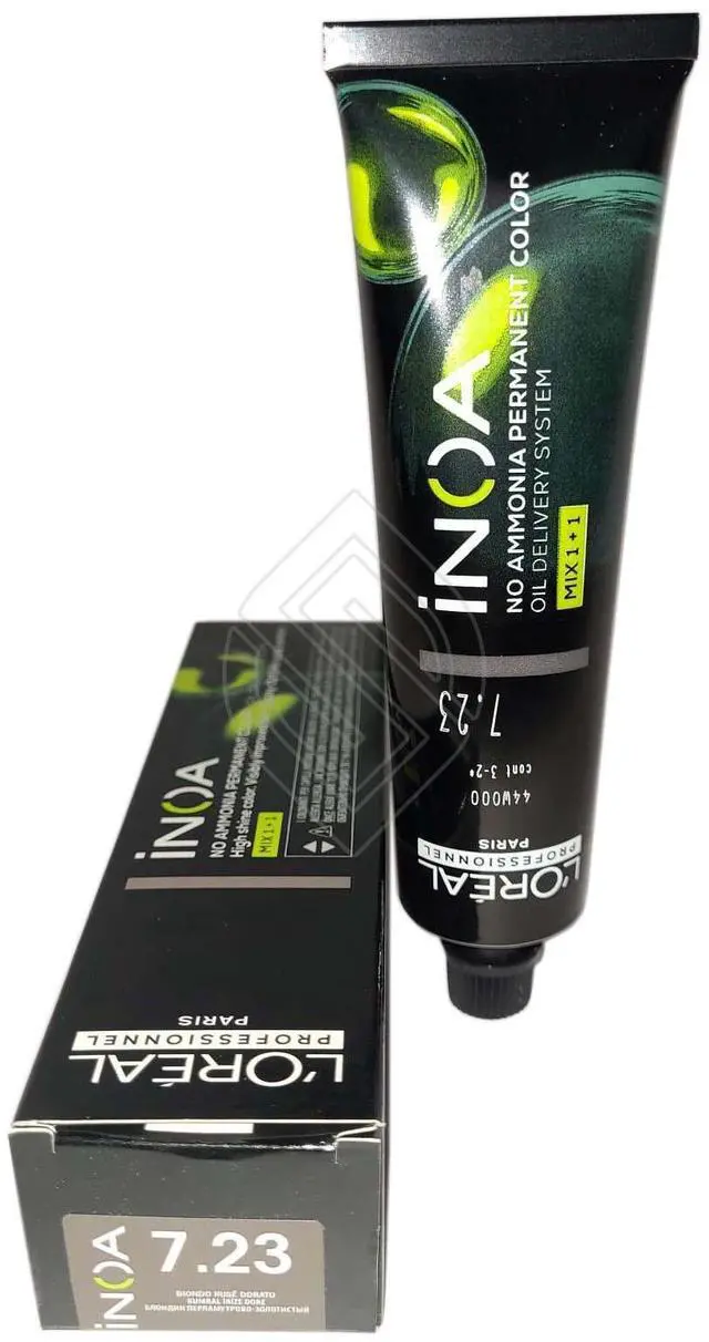 Loreal Inoa Ammonia Free ODS2 Hair Color 60g/2oz # 7.23 (Originally- 7.23 /7VG) Iridescent Golden Blonde permanent color with ODS2 technology with uncompromised comfort. Lightens up to 3 levels in 35 minutes. Covers up to 100% of white hair. Loreal Inoa hair color contains no ammonia and is enriched with oils and delivers outstanding color to the heart of the hair. INOA leaves hair feeling conditioned with sublime color radiance until your next color appointment. Experience our ultimate in luxury color, with improved comfort during the development time and no odor.