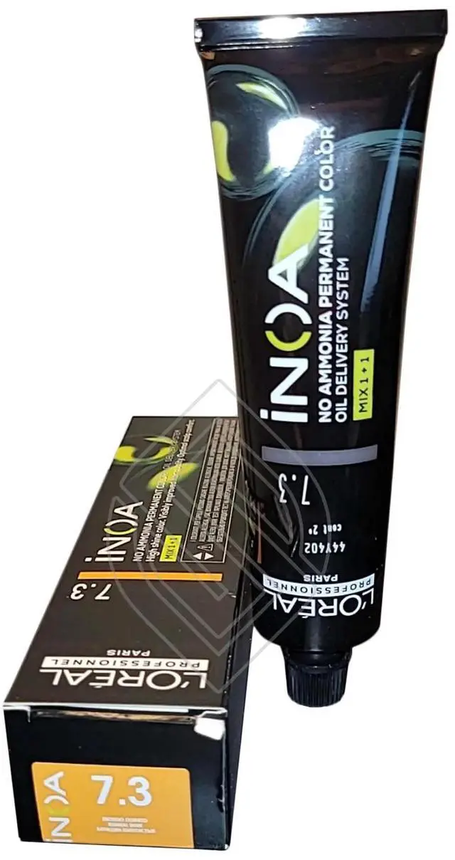 Loreal Inoa Ammonia Free ODS2 Hair Color 60g/2oz # 7.3 (Original- 7.3 /7G) Golden Blonde permanent color with ODS2 technology with uncompromised comfort. Lightens up to 3 levels in 35 minutes. Covers up to 100% of white hair. Loreal Inoa hair color contains no ammonia and is enriched with oils and delivers outstanding color to the heart of the hair. INOA leaves hair feeling conditioned with sublime color radiance until your next color appointment. Experience our ultimate in luxury color, with improved comfort during the development time and no odor.