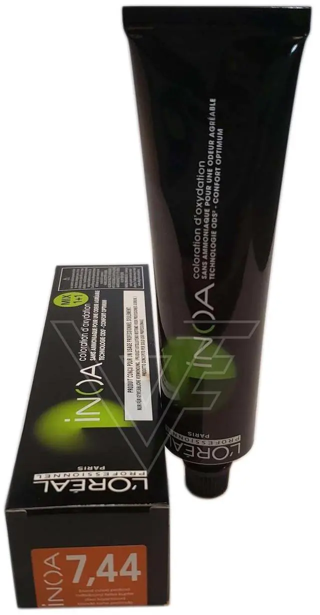 LOreal Professionnel INOA Ammonia Free Hair Color 2.1 oz # 7.44 (Originally- 7.44 /7CC) Deep CopperBlonde Permanent color with ODS2 technology for uncompromised comfort. Lightens up to 3 levels in 35 minutes. Covers up to 100% of white hair. Easy to mix and apply. Leaves hair feeling intensely nourished and hydrated until the next color treatment. Hair is softer than before the hair coloring process. Sublime Shine. Mix 1 to 1 ratio.