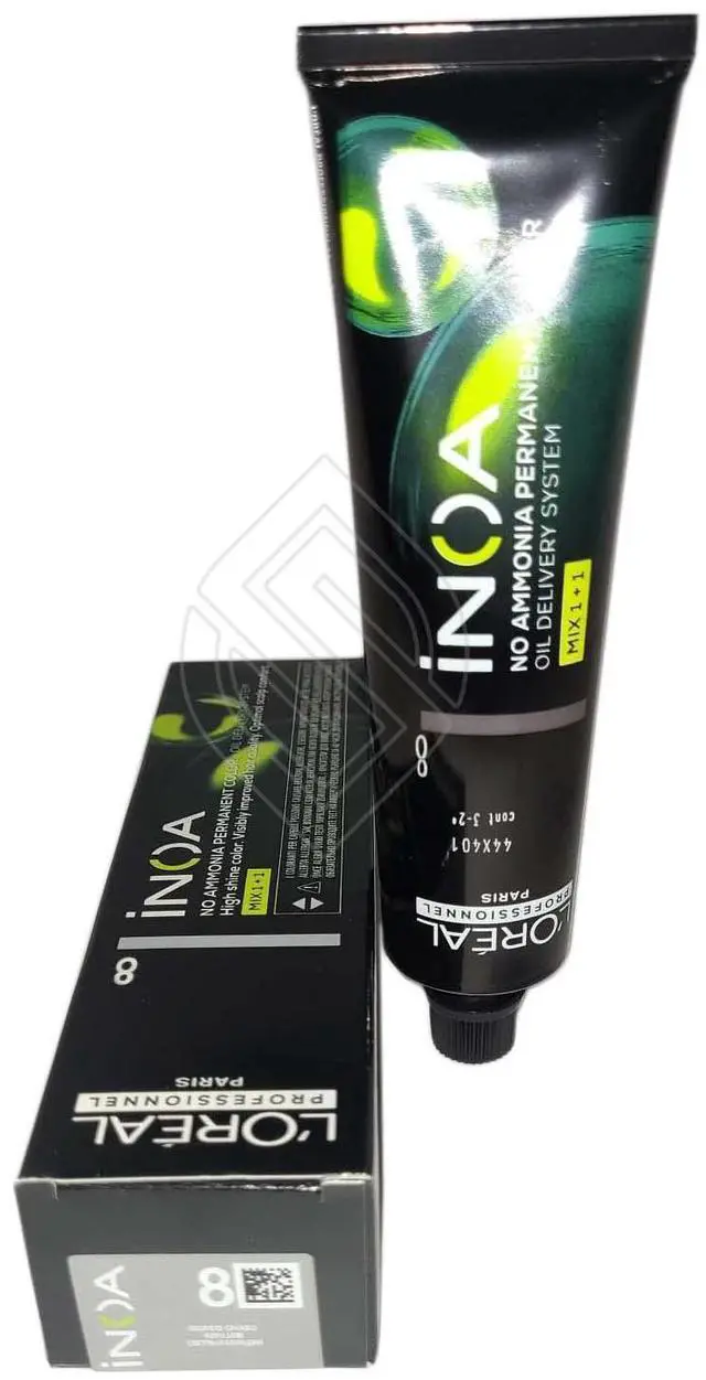 Loreal Inoa Ammonia Free ODS2 Hair Color 60g/2oz #8 (Originally-8/8N) Light Blonde permanent color with ODS2 technology with uncompromised comfort. Lightens up to 3 levels in 35 minutes. Covers up to 100% of white hair. Loreal Inoa hair color contains no ammonia and is enriched with oils and delivers outstanding color to the heart of the hair. INOA leaves hair feeling conditioned with sublime color radiance until your next color appointment. Experience our ultimate in luxury color, with improved comfort during the development time and no odor.
