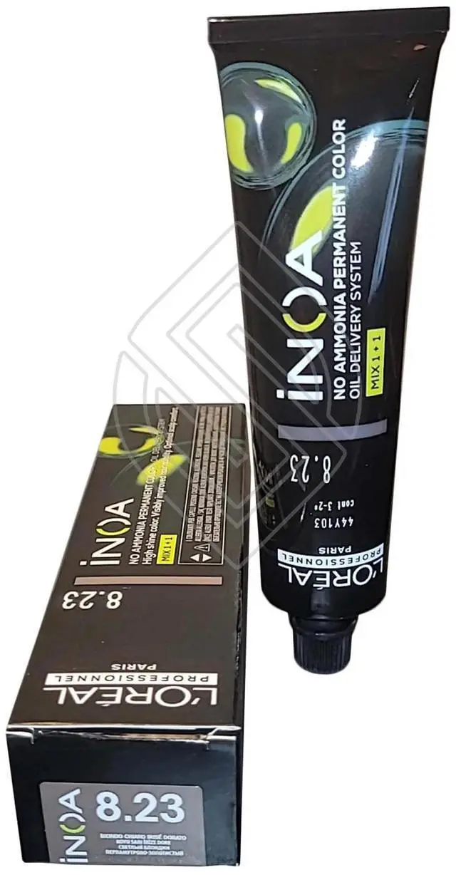 Loreal Inoa Ammonia Free ODS2 Hair Color 60g/2oz # 8.23 (Original- 8.23 /8VG) Light Blonde Iridescent Gold permanent color with ODS2 technology with uncompromised comfort. Lightens up to 3 levels in 35 minutes. Covers up to 100% of white hair. Loreal Inoa hair color contains no ammonia and is enriched with oils and delivers outstanding color to the heart of the hair. INOA leaves hair feeling conditioned with sublime color radiance until your next color appointment. Experience our ultimate in luxury color, with improved comfort during the development time and no odor.