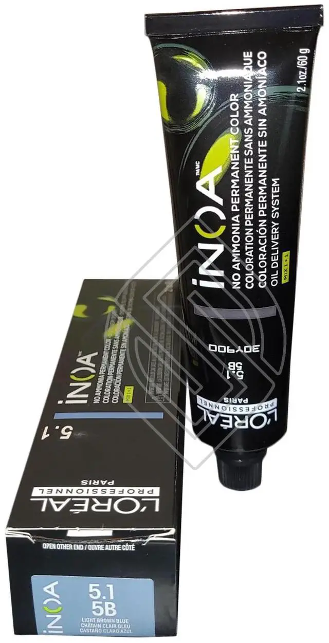 LOreal Professionnel INOA Ammonia Free Hair Color 2.1 oz ( 5.1 /5B) Light Ash Brown Loreal's INOA permanent color with ODS2 technology and zero ammonia offers uncompromised comfort. It adds extra shine to your hair up to 50%! Lightens up to 3 levels in 35 minutes. Covers up to 100% of white hair. Easy to mix and apply. Leaves hair feeling intensely nourished and hydrated until the next color treatment. Hair is softer than before the hair coloring process. Sublime shine. Mix 1 to 1 ratio.