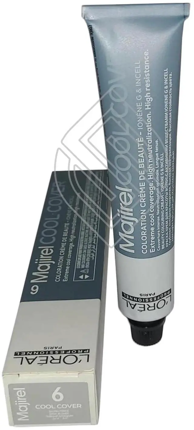 Loreal Majirel Cool Cover Hair Color Ionene G Incell#6 (European pack for-6/6N) Dark Blonde This is a permanent color with Ionene technology for uncompromised comfort. Lightens up to 4 levels in 35 minutes. Covers up to 100% of white hair. Easy to mix and apply. Leaves hair with sublime shine feeling intensely nourished and hydrated until the next color treatment. Loreal Majirel makes hair softer than before the coloring process. Mix 1 to 1.3 ratio.