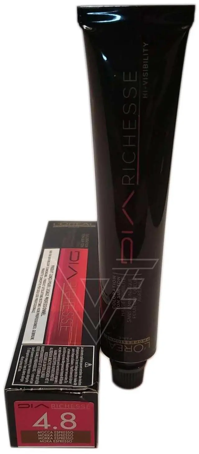 Loreal Dia Richesse Professional Hair Color # 4.8 (Originally- 4.8 /4M)Mocha Espresso 1.7 Ounce 50 Milliliters Dia Richesse is ammonia-free and tone-on-tone coloration process that illuminates natural hair color. Use this for a rich, deep reflection and exceptionally soft feel. This is ideal for blending away your first grey hairs leaving them with natural-looking color. Improved white hair coverage by up to 70% on base shades. The coloring lasts up to 4 weeks. Use this for 105 levels of lightning.