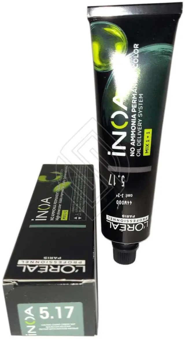 Loreal Inoa Ammonia Free ODS2 Hair Color 60g/2oz # 5.17 (Originally- 5.17 /5BGr) permanent color with ODS2 technology with uncompromised comfort. Lightens up to 3 levels in 35 minutes. Covers up to 100% of white hair. Loreal Inoa hair color contains no ammonia and is enriched with oils and delivers outstanding color to the heart of the hair. INOA leaves hair feeling conditioned with sublime color radiance until your next color appointment. Experience our ultimate in luxury color, with improved comfort during the development time and no odor.