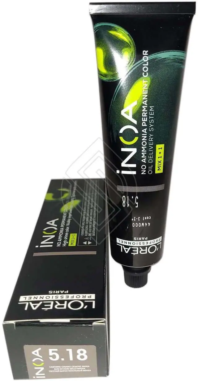 Loreal Inoa Hair Color # 5.18 (Originally- 5.18 /5BM) Light Ash Mocha Brown ODS2 No Ammonia 2 permanent color with ODS2 technology with uncompromised comfort. Lightens up to 3 levels in 35 minutes. Covers up to 100% of white hair. Loreal Inoa hair color contains no ammonia and is enriched with oils and delivers outstanding color to the heart of the hair. INOA leaves hair feeling conditioned with sublime color radiance until your next color appointment. Experience our ultimate in luxury color, with improved comfort during the development time and no odor.