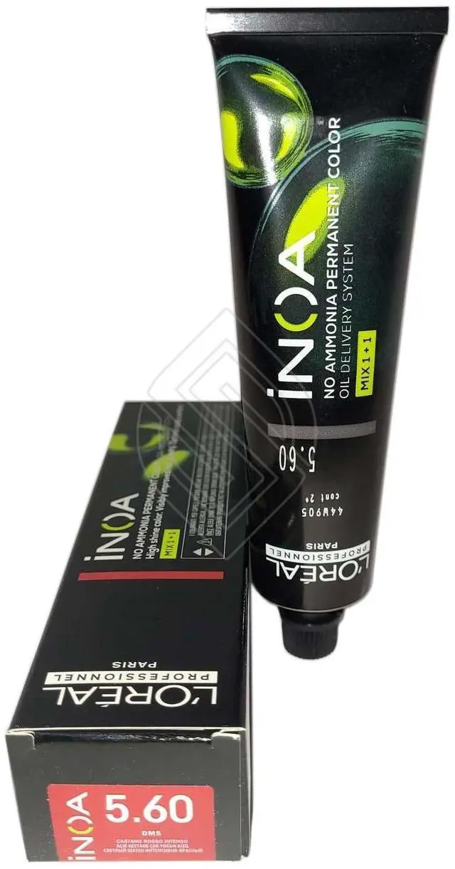 Loreal Inoa Ammonia Free ODS2 Hair Color 60g/2oz # 5.60 (Originally- 5.60 /5RRR) permanent color with ODS2 technology with uncompromised comfort. Lightens up to 3 levels in 35 minutes. Covers up to 100% of white hair. Loreal Inoa hair color contains no ammonia and is enriched with oils and delivers outstanding color to the heart of the hair. INOA leaves hair feeling conditioned with sublime color radiance until your next color appointment. Experience our ultimate in luxury color, with improved comfort during the development time and no odor.