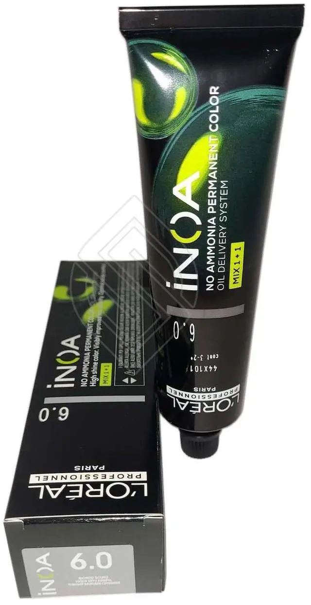 Loreal Inoa Ammonia Free ODS2 Hair Color 60g/2oz # 6.0 (Originally- 6.0 /6NN) permanent color with ODS2 technology with uncompromised comfort. Lightens up to 3 levels in 35 minutes. Covers up to 100% of white hair. Loreal Inoa hair color contains no ammonia and is enriched with oils and delivers outstanding color to the heart of the hair. INOA leaves hair feeling conditioned with sublime color radiance until your next color appointment. Experience our ultimate in luxury color, with improved comfort during the development time and no odor.