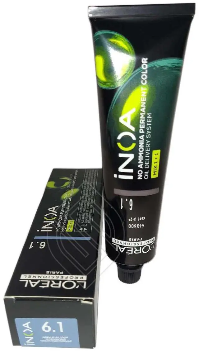 Loreal Inoa Ammonia Free ODS2 Hair Color 60g/2oz # 6.1 (Originally- 6.1 /6B) permanent color with ODS2 technology with uncompromised comfort. Lightens up to 3 levels in 35 minutes. Covers up to 100% of white hair. Loreal Inoa hair color contains no ammonia and is enriched with oils and delivers outstanding color to the heart of the hair. INOA leaves hair feeling conditioned with sublime color radiance until your next color appointment. Experience our ultimate in luxury color, with improved comfort during the development time and no odor.