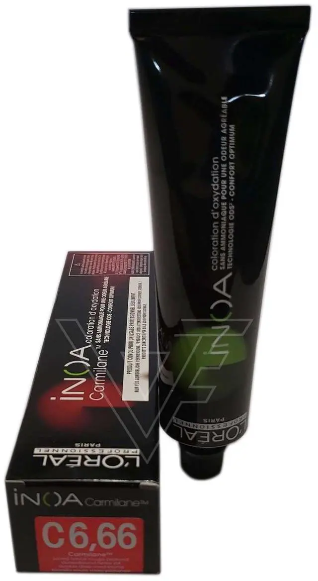 Loreal Inoa Hair Color #C 6.66. (Originally-66/6RR) Red Red ODS2 No Ammoniapermanent color with ODS2 technology with uncompromised comfort. Lightens up to 3 levels in 35 minutes. Covers up to 100% of white hair. Loreal Inoa hair color contains no ammonia and is enriched with oils and delivers outstanding color to the heart of the hair. INOA leaves hair feeling conditioned with sublime color radiance until your next color appointment. Experience our ultimate in luxury color, with improved comfort during the development time and no odor.