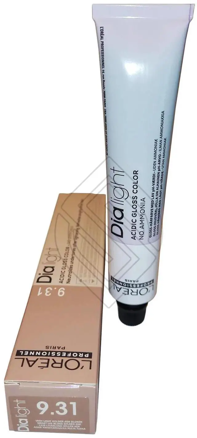 Loreal Professionnel Paris Dia Light # 9.31 Very Light Gloden Ash Blonde Demi-Permanent Acidic Gloss Color No Ammonia Euro= 9.31 /9GB 1.7 Ounce 50 Milliliters
