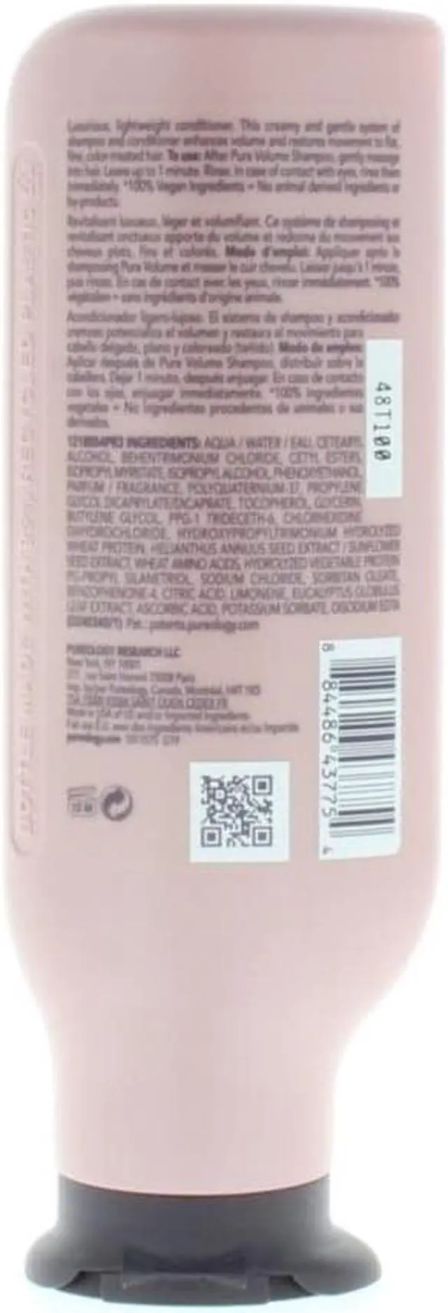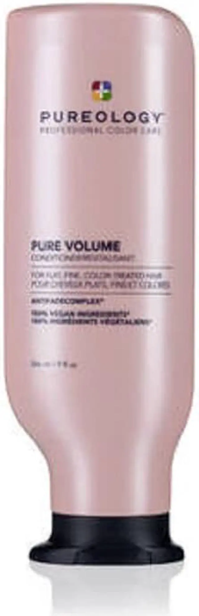 Pureology Pure Volume Conditoner enhances volume and restores movement to flat, fine color-treated hair with key ingredients Wheat Protein and Eucalyptus Leaf Extract and a signature aromatherapy blend of Pink Grapefruit, Wild Rose, and Cedarwood.