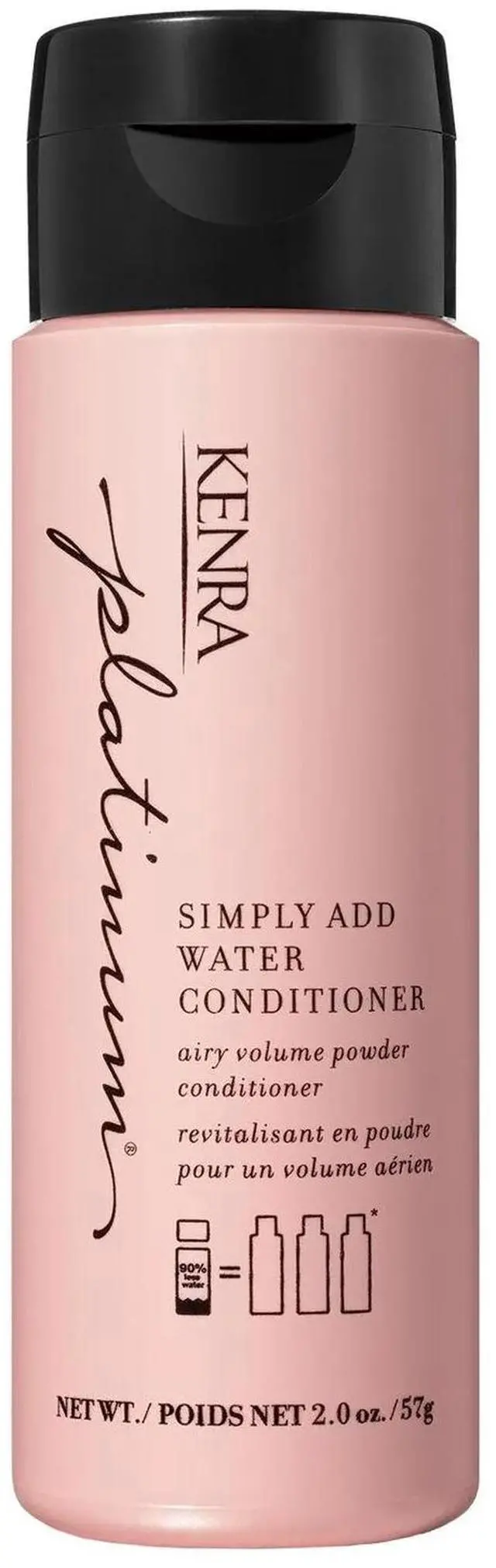 Kenra Platinum Simply Add Water Conditioner is a Powder to Liquid Conditioner for added fullness. Less water, less plastic, less space; More product, more washes, more volume.