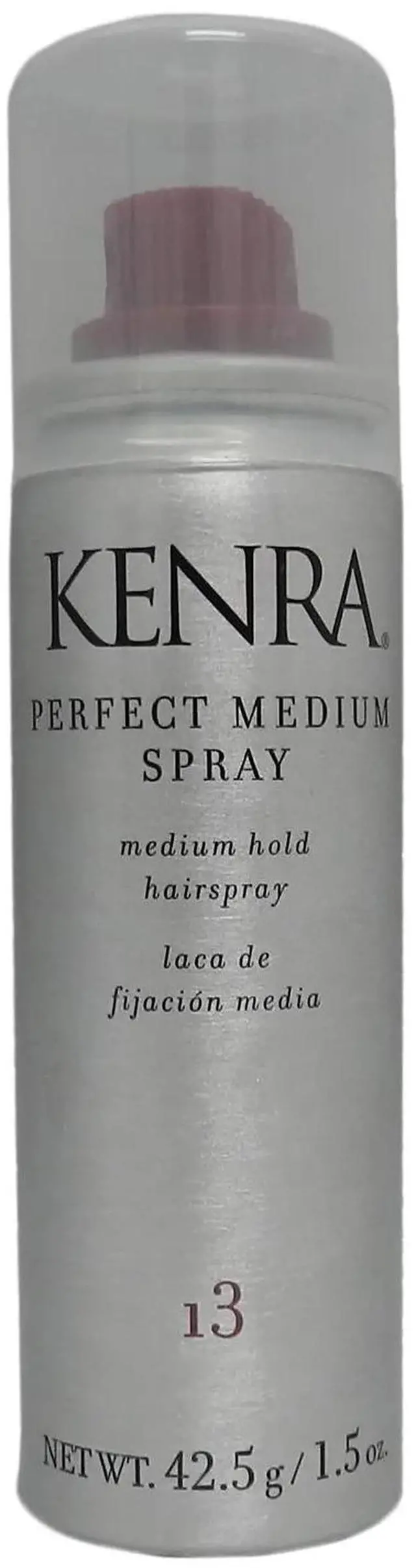 Kenra Perfect Medium Spray 13 Medium Hold Hairspray provides styling control without stiffness. Fast-drying formulation for touchable, brush-through hold. Finishes with high-shine