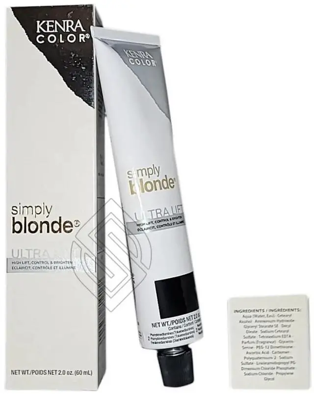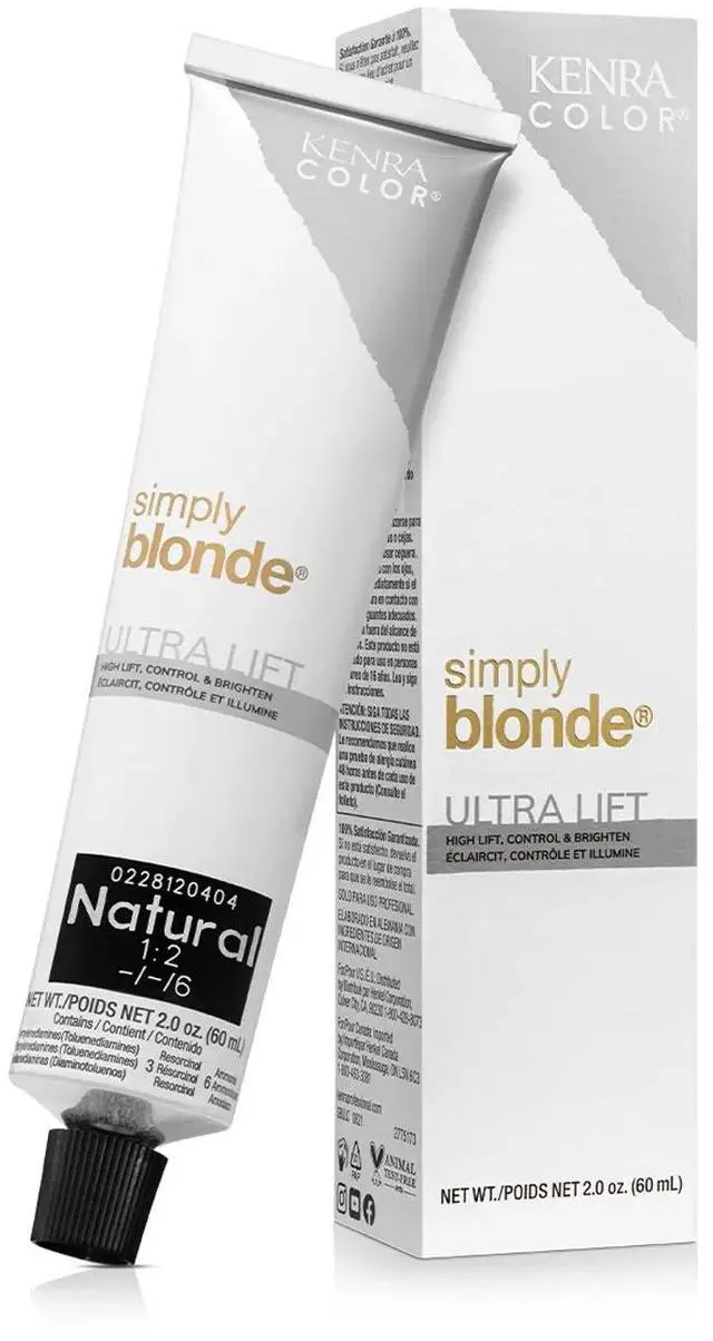 Kenra Simply Blonde Ultra Lift Natural High Lift Control And Brighten Permanent Hair Color is a timesaving single step coloring creme delivering high lift up to 4 levels on natural hair. This creamy formula has a cool blue base to help neutralize unwanted warm undertones leaving you with radiant results. Blonding you can trust. Best features are up to 4 levels of lift tone in one easy process. Cool blue base for balanced results. Blonding you can trust