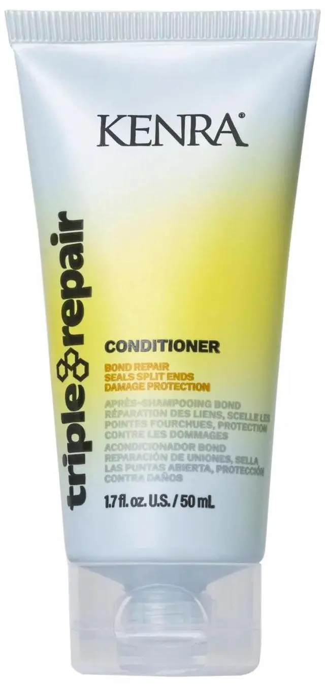 Kenra Triple Repair Conditioner Bond Repair Seals Split Ends Damage Protection provides a targeted yet cumulative effect of further strengthening and reduced breakage with multiple uses. Up to 89% less breakage* when used as a system *Against combing breakage on damaged hair vs. a non-conditioning shampoo. Leaves hair looking radiant. Hair looks and feels healthy. Enhances moisture