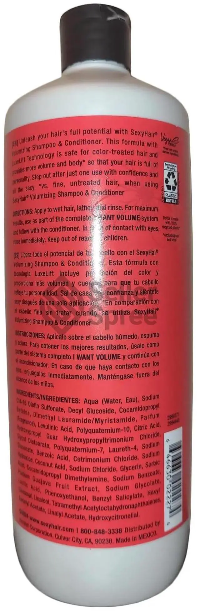 SexyHair I WantVolumeVolumizing Shampoo. This formula with LuxeLift Technology includes ingredients that provide up to 10% more volume* for fuller, thicker looking hair after just one use, without weighing hair down.
