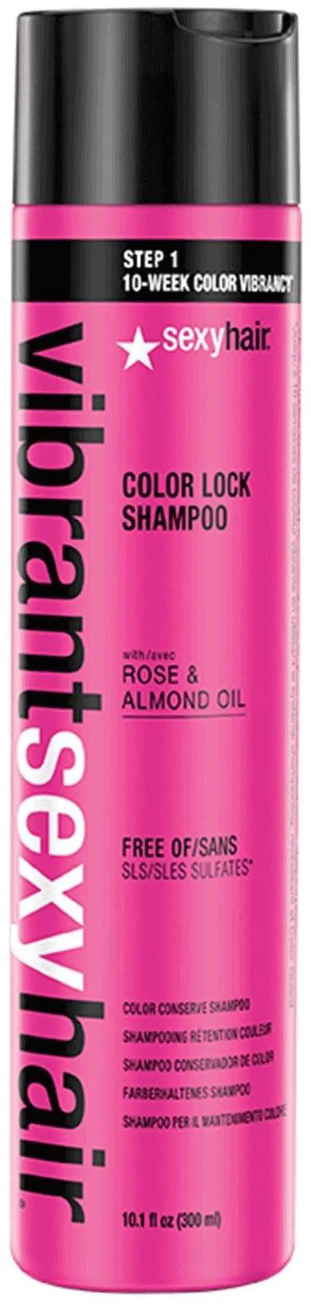 Sexy Hair Vibrant Color Conserve Color Lock Shampoo 10.1 Ounce Sexy Hair Vibrant Sulfate-Free Color Lock Shampoo is gluten, paraben, and salt-free shampoo made with rose and almond oil that helps keep hair color looking fresher for longer. This shampoo helps restore and seal the hair color protecting it from washing out. Gentle ingredients clean, restore, and repair the health of the hair shaft. Help keep hair color looking fresh for up to 10 weeks.