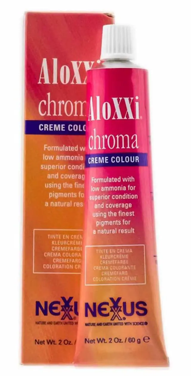 Nexxus AloXXi Chroma Creme Colour Hair Color ORIGINAL 2oz (G) Yellow Gold Formulated with low ammonia for superior condition and coverage using finest pigments for a natural result. Mix 1oz of Aloxxi Chroma to 1.5 oz of Developer.